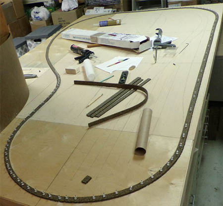 These push pins are used to hold the track in place while the glue dries. The reason for this is the track can be remove easy if you need to change any track plans.