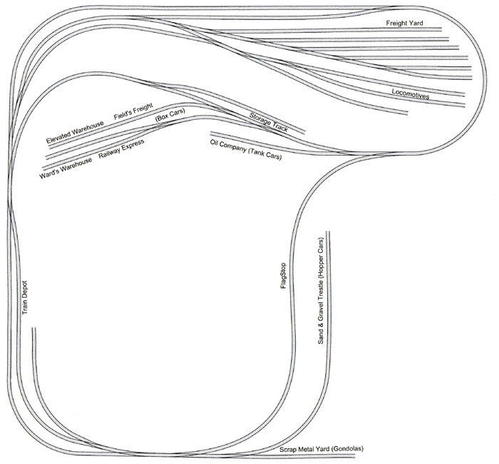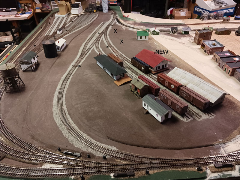 Below: Overhead View showing new red roof freight and X's where the oil company track will be moved to.