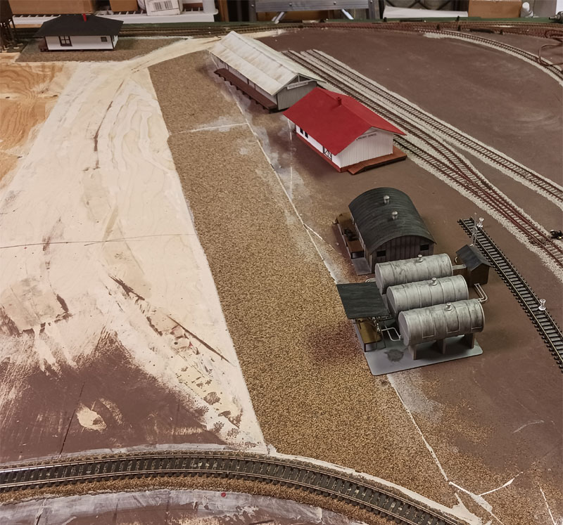 All the new sections are now glued down. I now have more space on both ends for the warehouse and the oil company.
