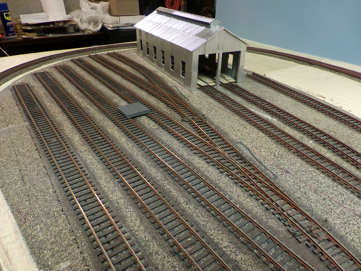 After all the track was laid, all the DCC track wiring done. At this point I painted all the ties and the rail sides. I should have done the engine house pit and the Dwarf Signals wiring first. Now I have to clean the rail with alcohol where any other wiring is needed on the rail. All the switch ground throw and side mounted switch machines need to be installed before any ballasting can be done.