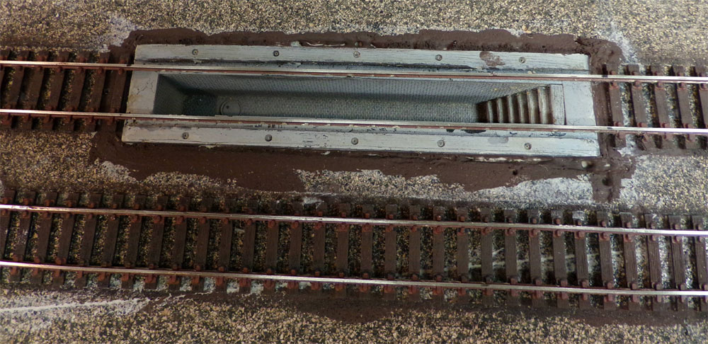 The two tracks on the right side of the yard are for locomotives and a engine house. On one of the tracks I installed a pit and added 2 LED lights on one side
