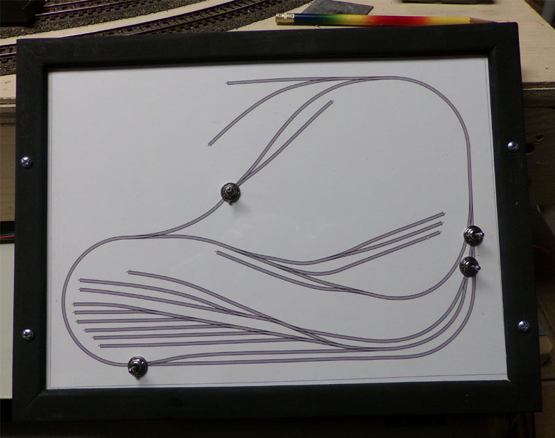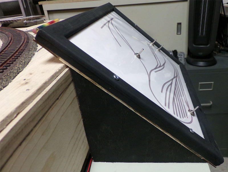 OK, I got the 4 side mounted switch machines install, made a 8 X 11 inch control panel of the layout for the 4 toggle switches.