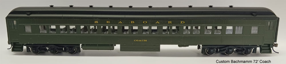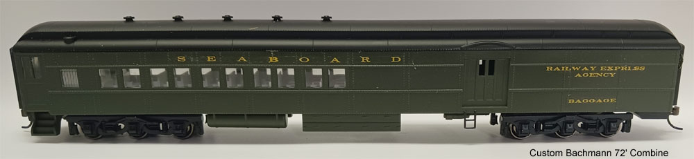 Bachmann Custom Lettered 72' Heavyweight Combine (above) and Coach (below), both are lighted